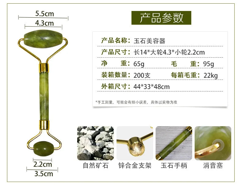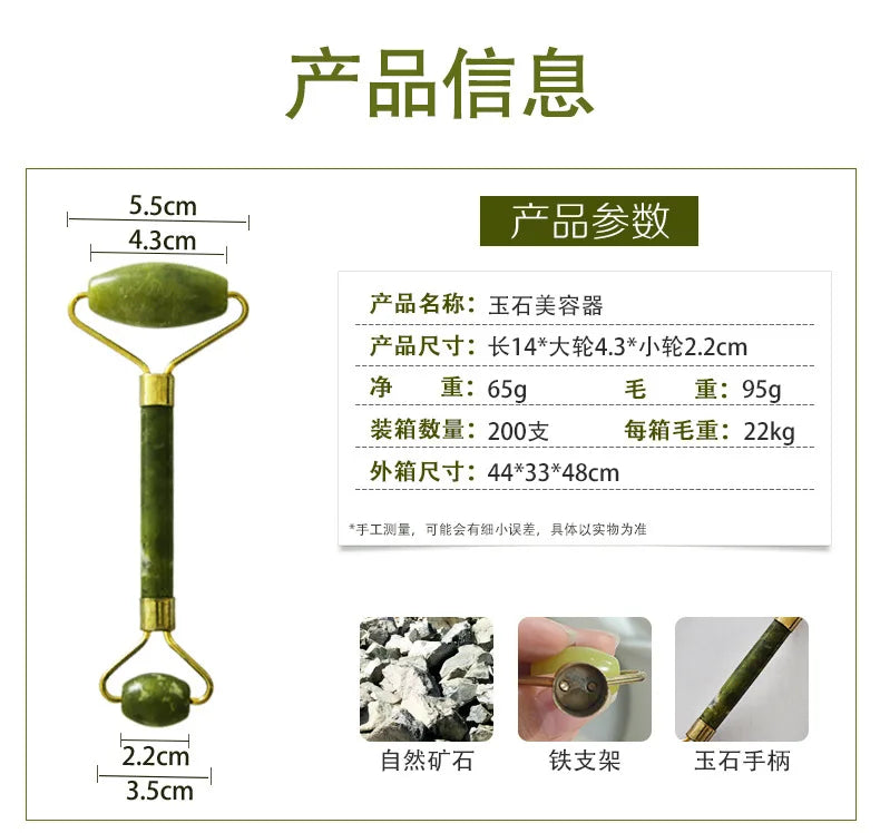 Natural Jade Roller Massager for Face Body Back Foot Massage Roller Facial Liftting Anti-wrinkle Double-end Gua Sha Jade Stone